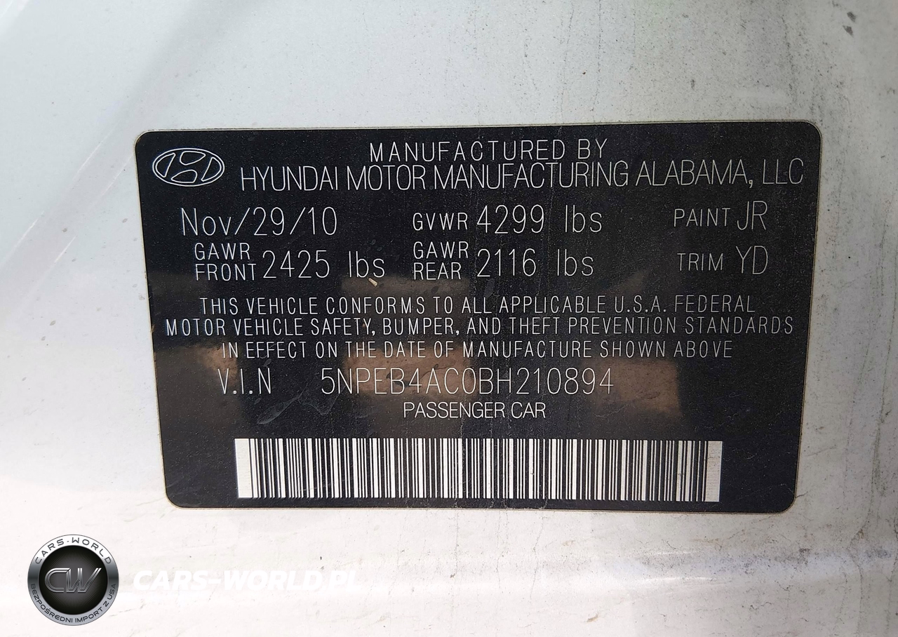 IAAI Nr: I-44774225 VIN: 5NPEB4AC0BH210894 Port: Houston, TX