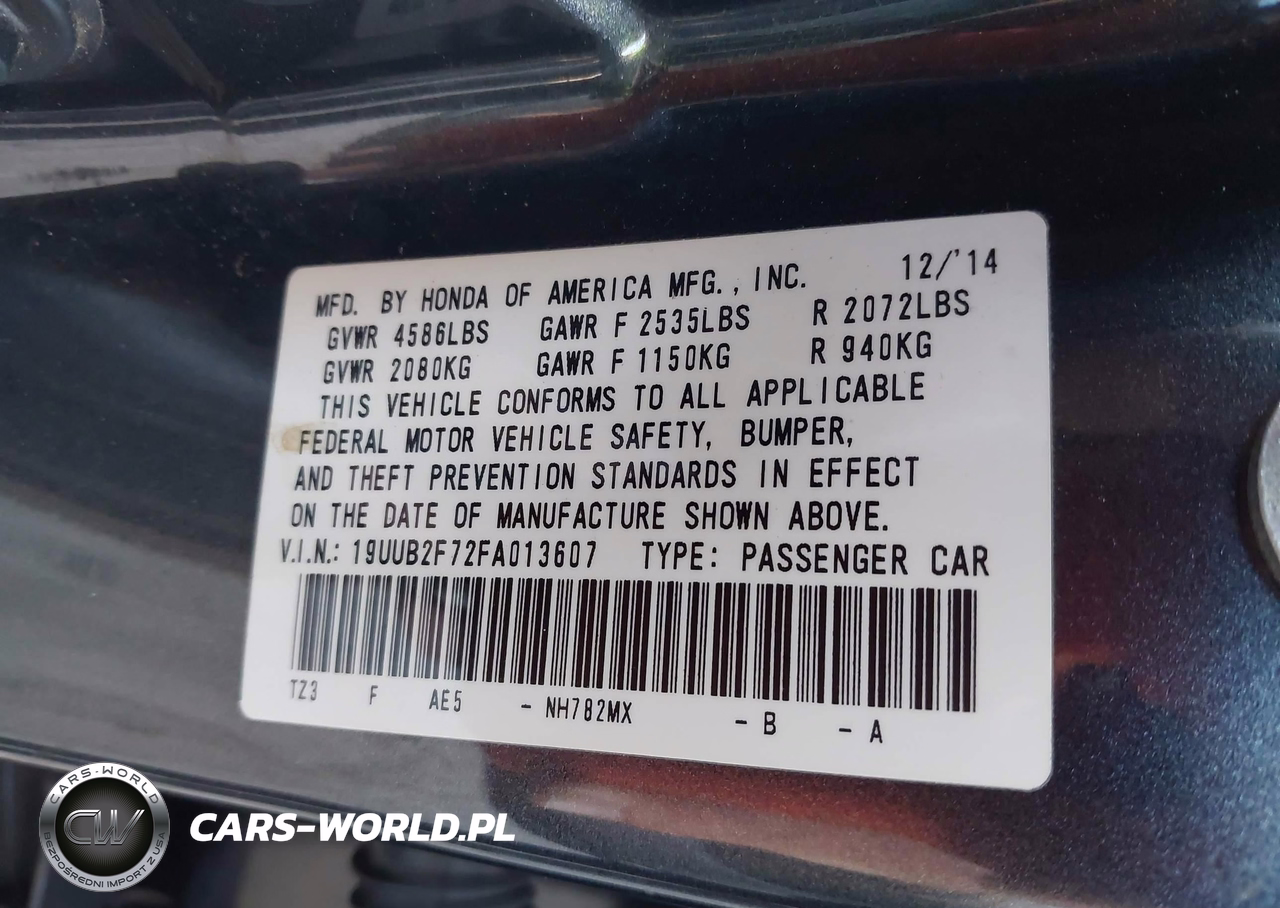 IAAI Nr: I-44775959 VIN: 19UUB2F72FA013607 Port: Los Angeles, CA