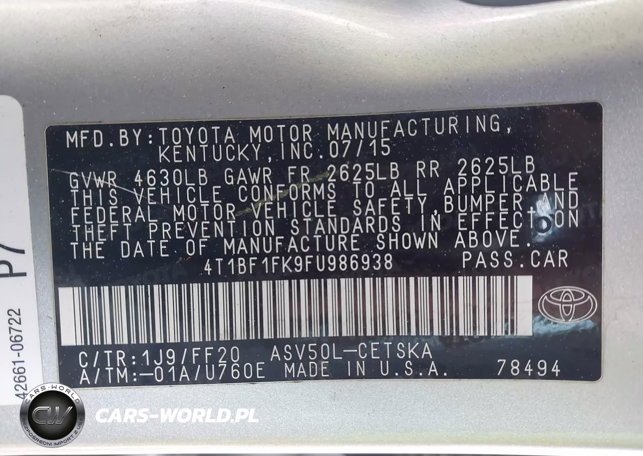 IAAI Nr: I-44776501 VIN: 4T1BF1FK9FU986938 Port: Savannah, GA