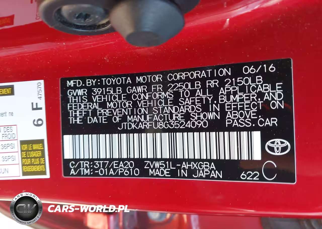 IAAI Nr: I-44776910 VIN: JTDKARFU8G3524090 Port: Indianapolis, IN