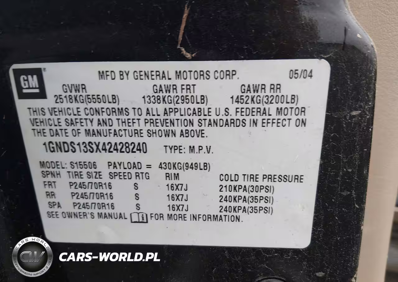 IAAI Nr: I-44776957 VIN: 1GNDS13SX42428240 Port: Indianapolis, IN