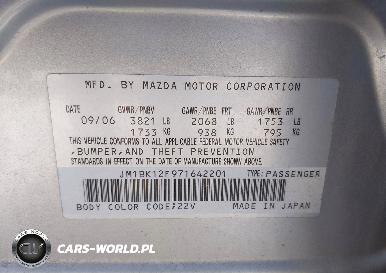 IAAI Nr: I-44777421 VIN: JM1BK12F971642201 Port: Houston, TX