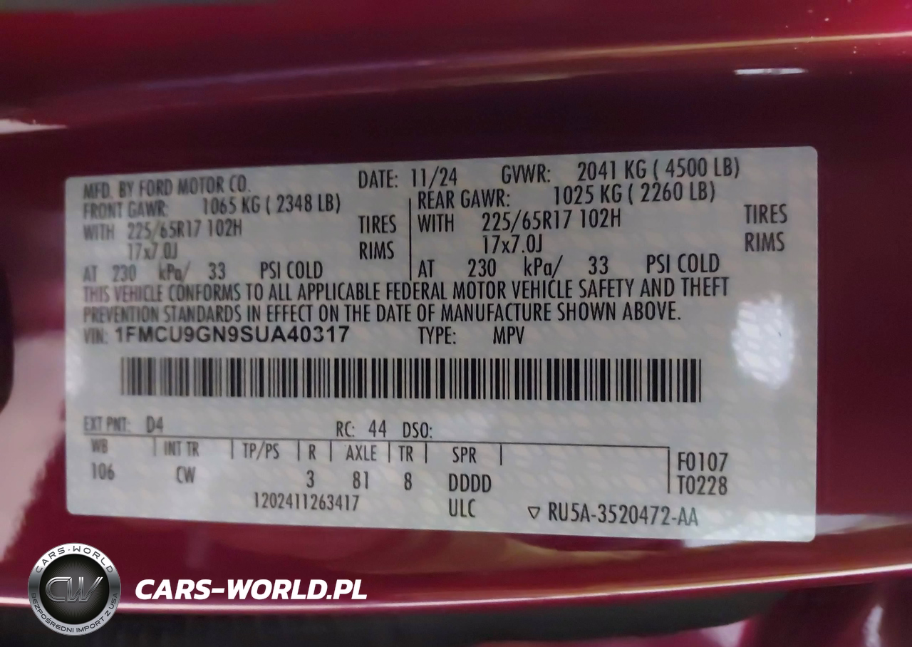IAAI Nr: I-44777577 VIN: 1FMCU9GN9SUA40317 Port: Indianapolis, IN