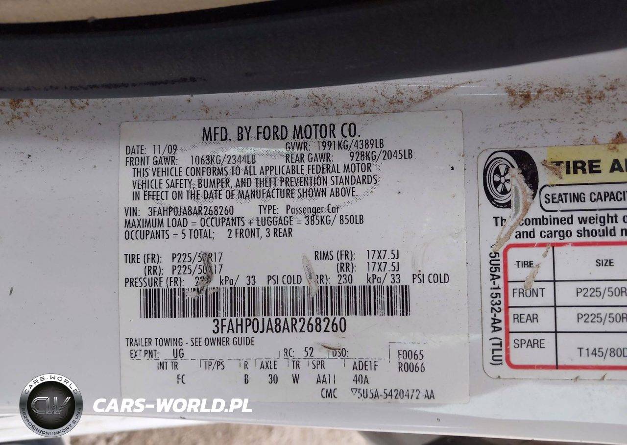 IAAI Nr: I-44778107 VIN: 3FAHP0JA8AR268260 Port: Houston, TX