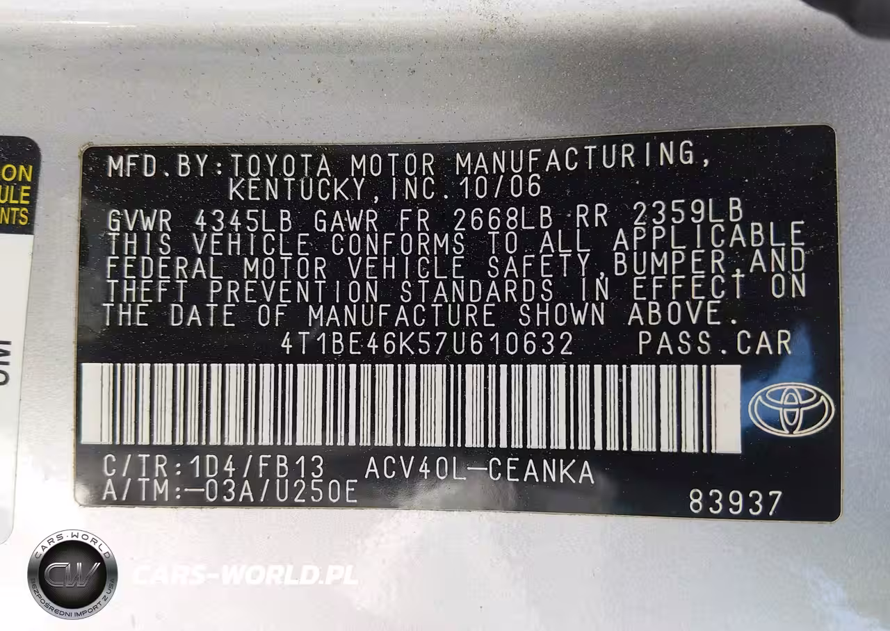 IAAI Nr: I-44778282 VIN: 4T1BE46K57U610632 Port: Los Angeles, CA