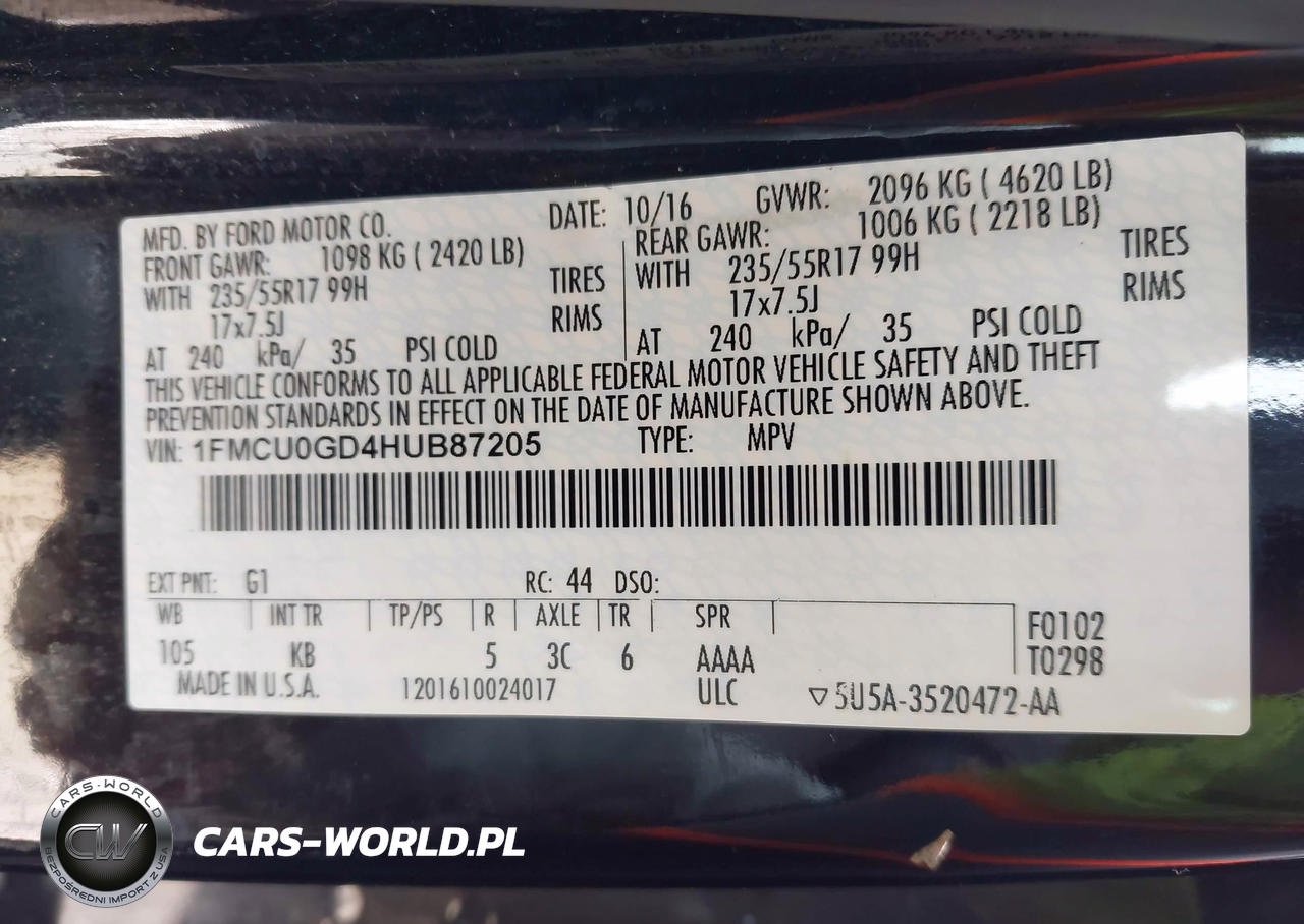 IAAI Nr: I-44778662 VIN: 1FMCU0GD4HUB87205 Port: Indianapolis, IN