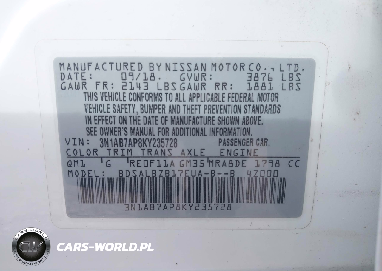 IAAI Nr: I-44778688 VIN: 3N1AB7AP8KY235728 Port: Houston, TX