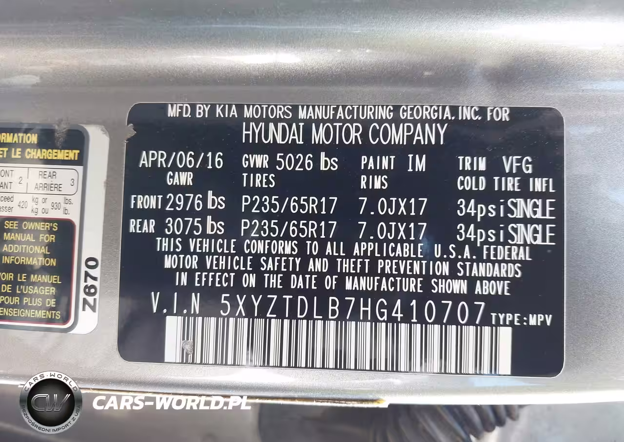 IAAI Nr: I-44778762 VIN: 5XYZTDLB7HG410707 Port: Los Angeles, CA
