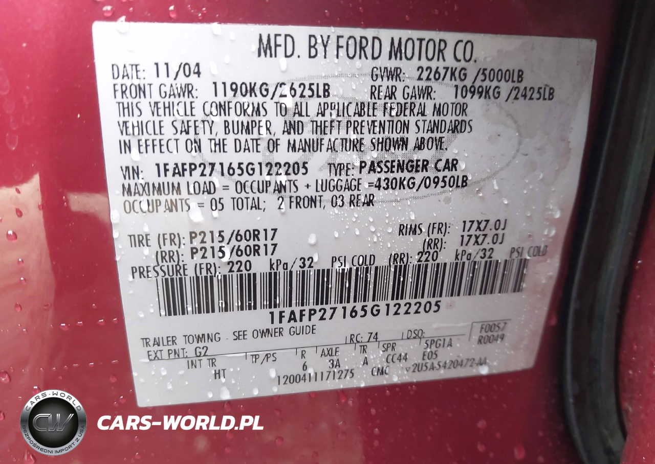 IAAI Nr: I-44779036 VIN: 1FAFP27165G122205 Port: Los Angeles, CA
