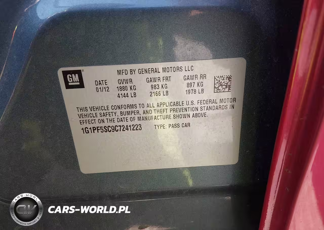IAAI Nr: I-44780285 VIN: 1G1PF5SC9C7241223 Port: Elizabeth, NJ