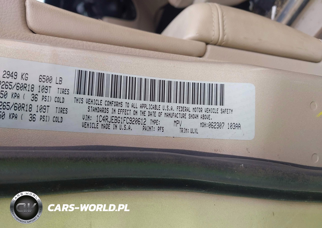 IAAI Nr: I-44780465 VIN: 1C4RJEBG1FC920612 Port: Houston, TX