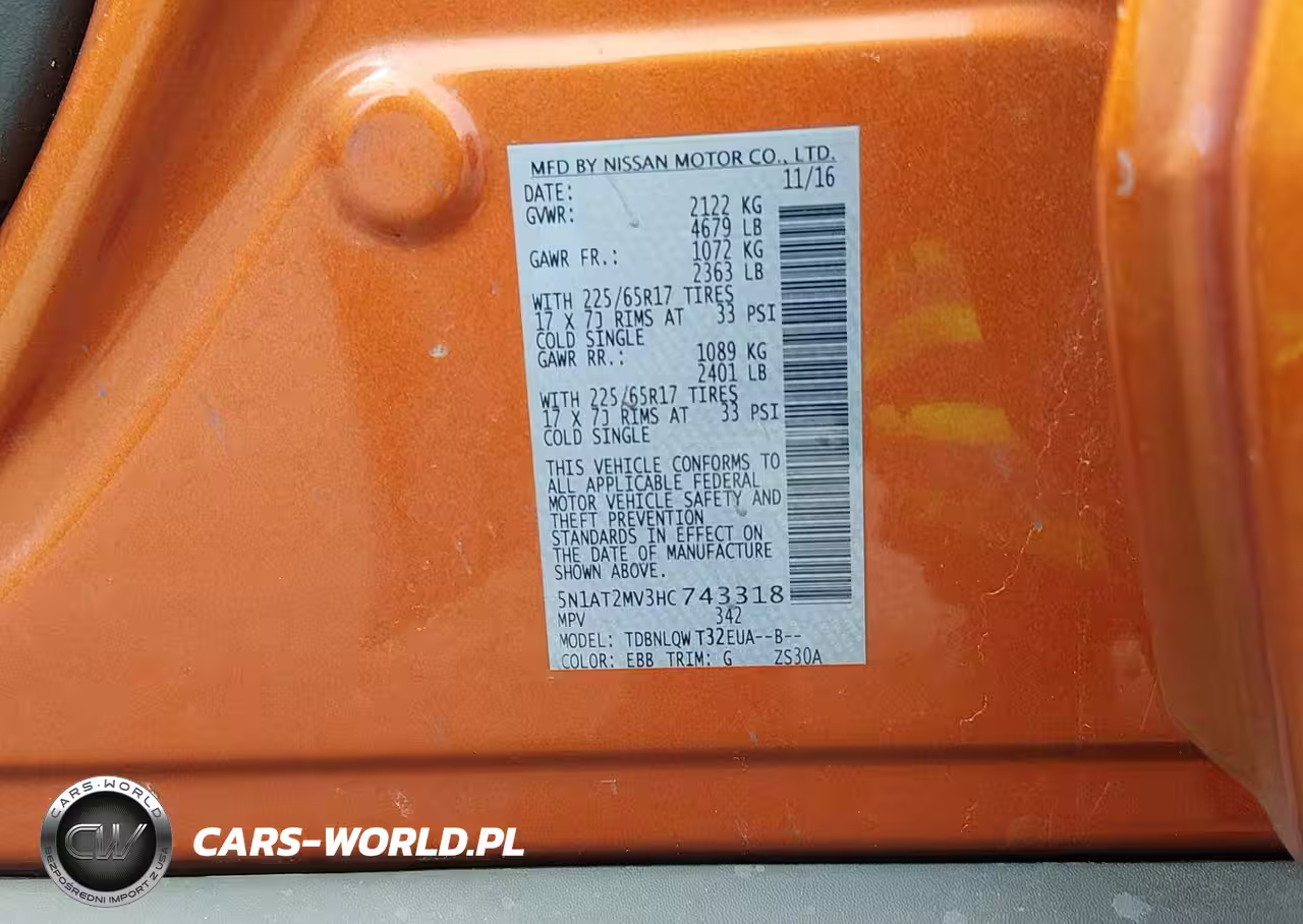 IAAI Nr: I-44780486 VIN: 5N1AT2MV3HC743318 Port: Elizabeth, NJ