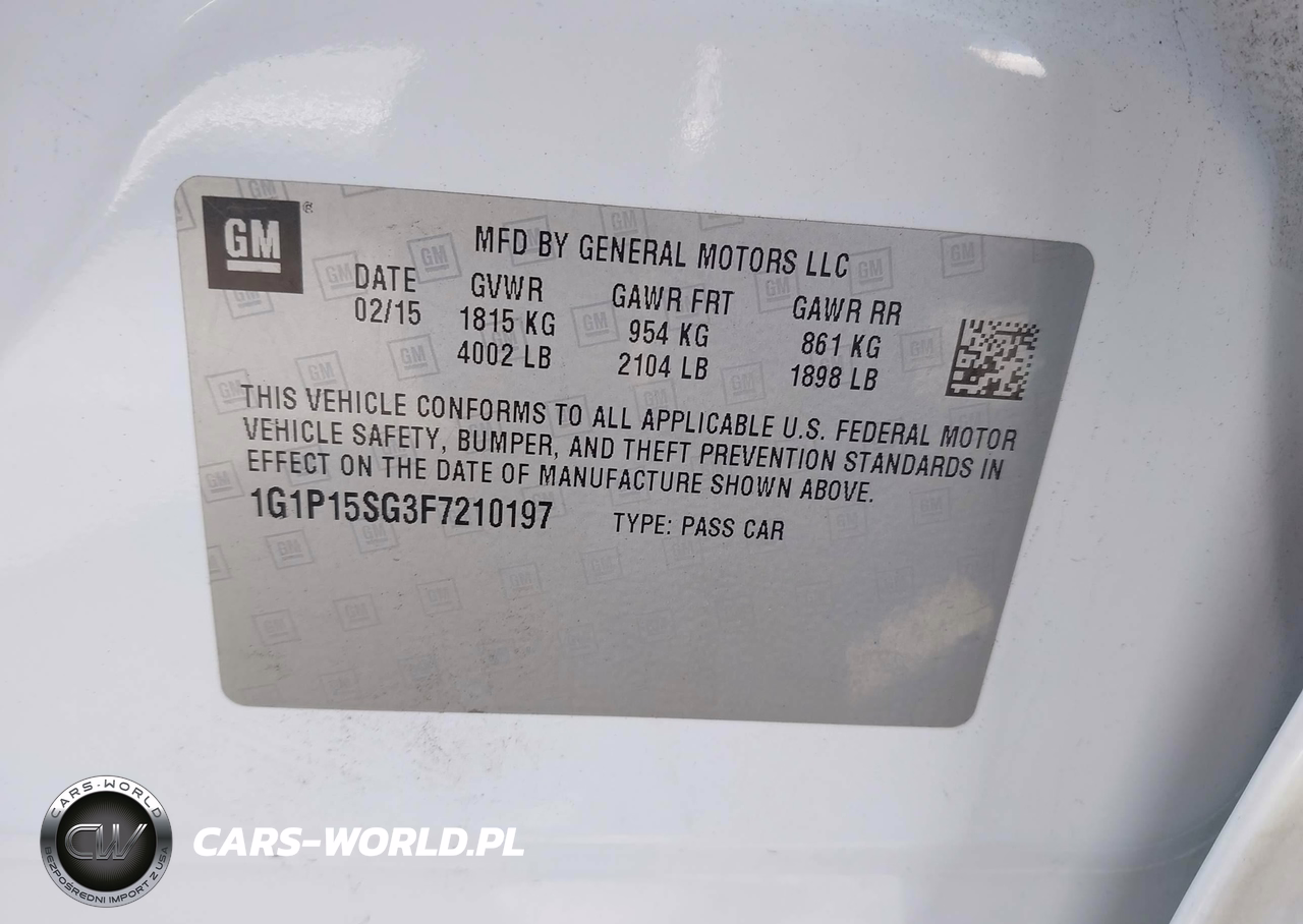 IAAI Nr: I-44781212 VIN: 1G1P15SG3F7210197 Port: Los Angeles, CA