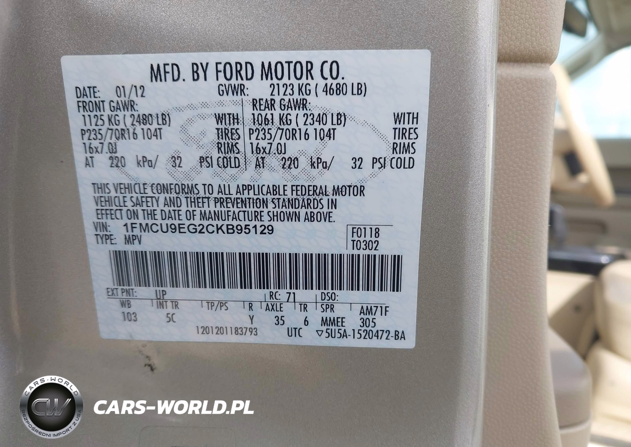IAAI Nr: I-44782013 VIN: 1FMCU9EG2CKB95129 Port: Indianapolis, IN