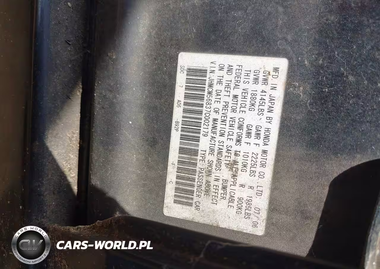 IAAI Nr: I-44782809 VIN: JHMCM56837C002179 Port: Savannah, GA