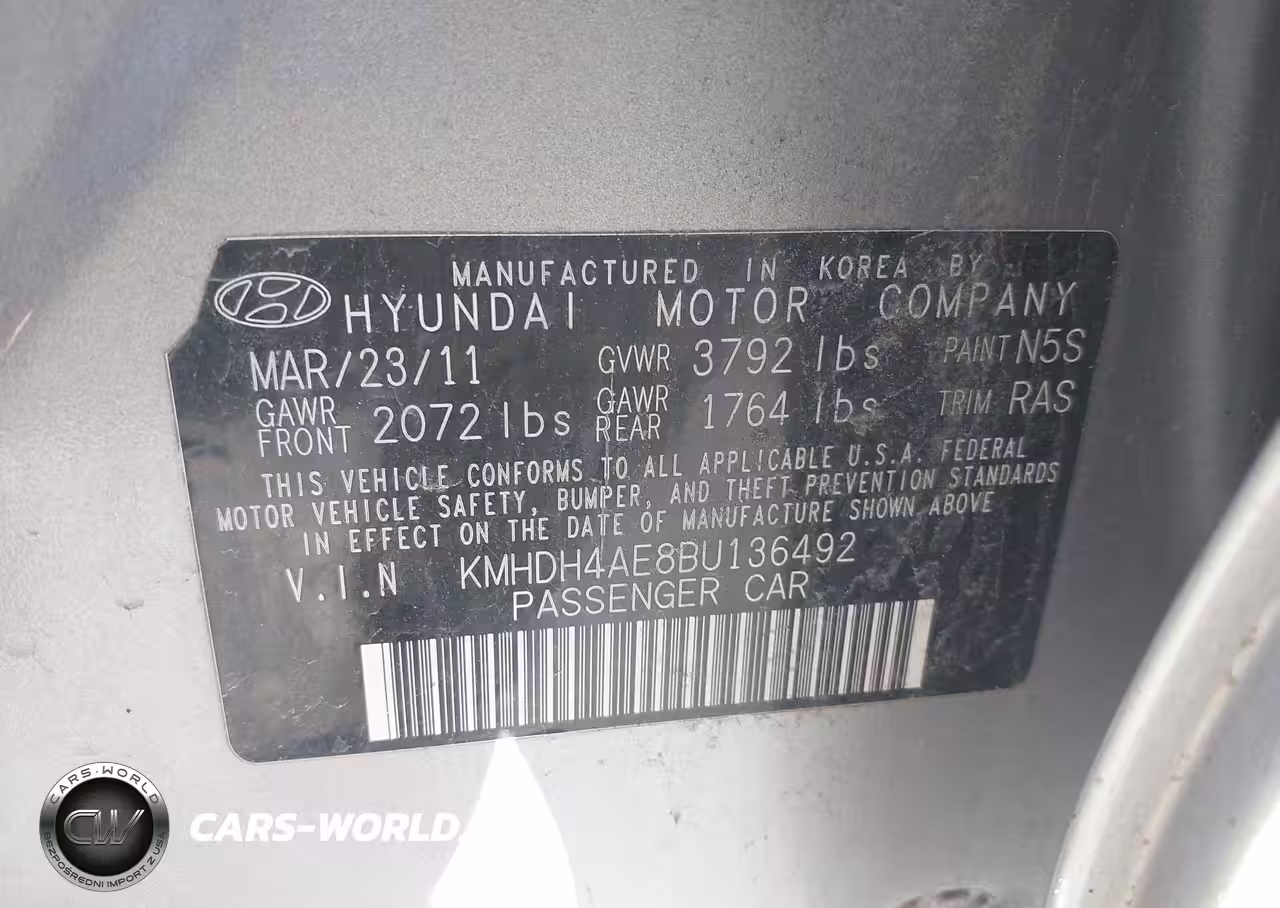 IAAI Nr: I-44783056 VIN: KMHDH4AE8BU136492 Port: Elizabeth, NJ