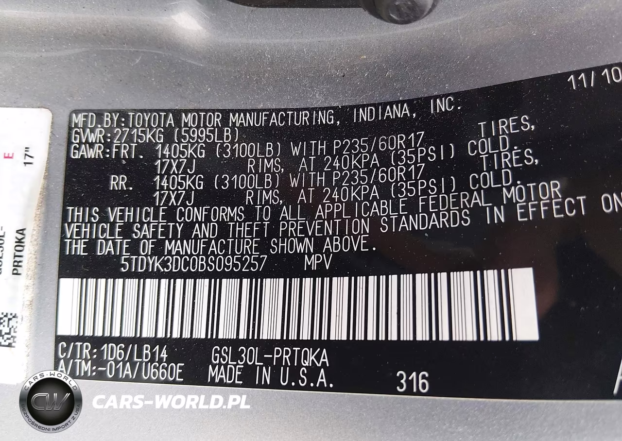 IAAI Nr: I-44784239 VIN: 5TDYK3DC0BS095257 Port: Indianapolis, IN