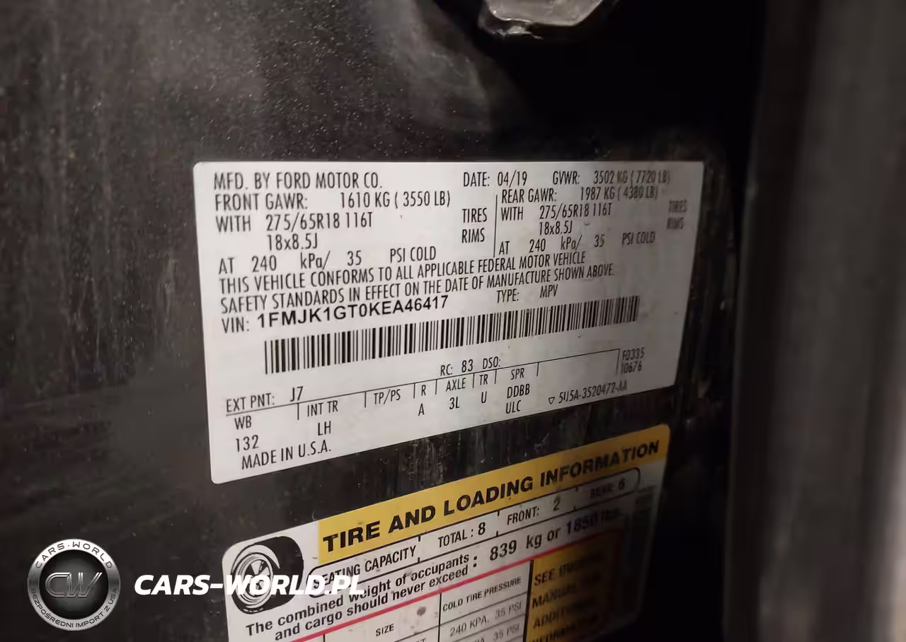 IAAI Nr: I-44784794 VIN: 1FMJK1GT0KEA46417 Port: Los Angeles, CA