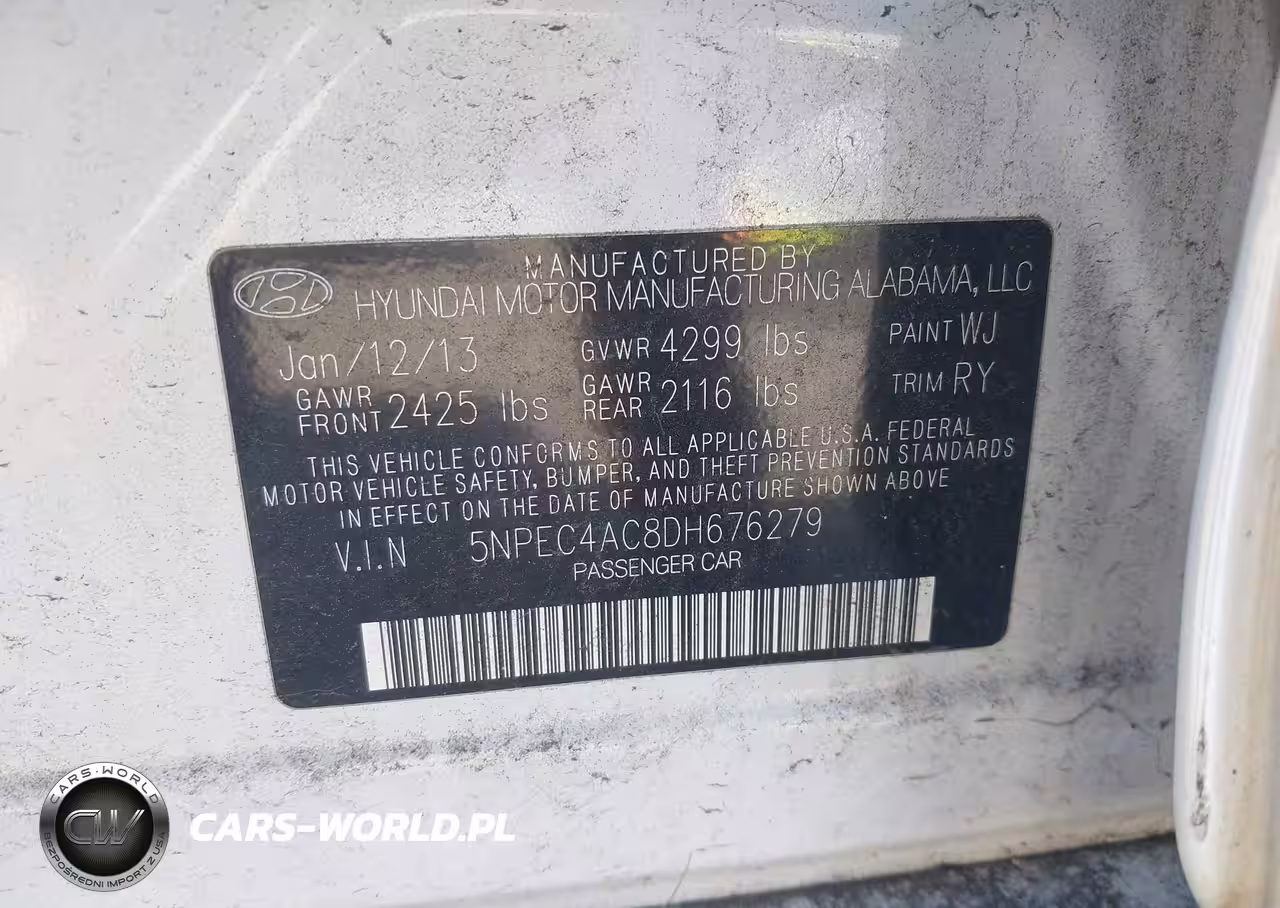 IAAI Nr: I-44787850 VIN: 5NPEC4AC8DH676279 Port: Los Angeles, CA