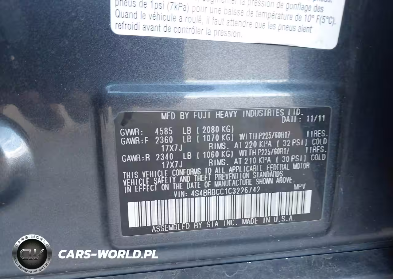 IAAI Nr: I-44788146 VIN: 4S4BRBCC1C3226742 Port: Elizabeth, NJ