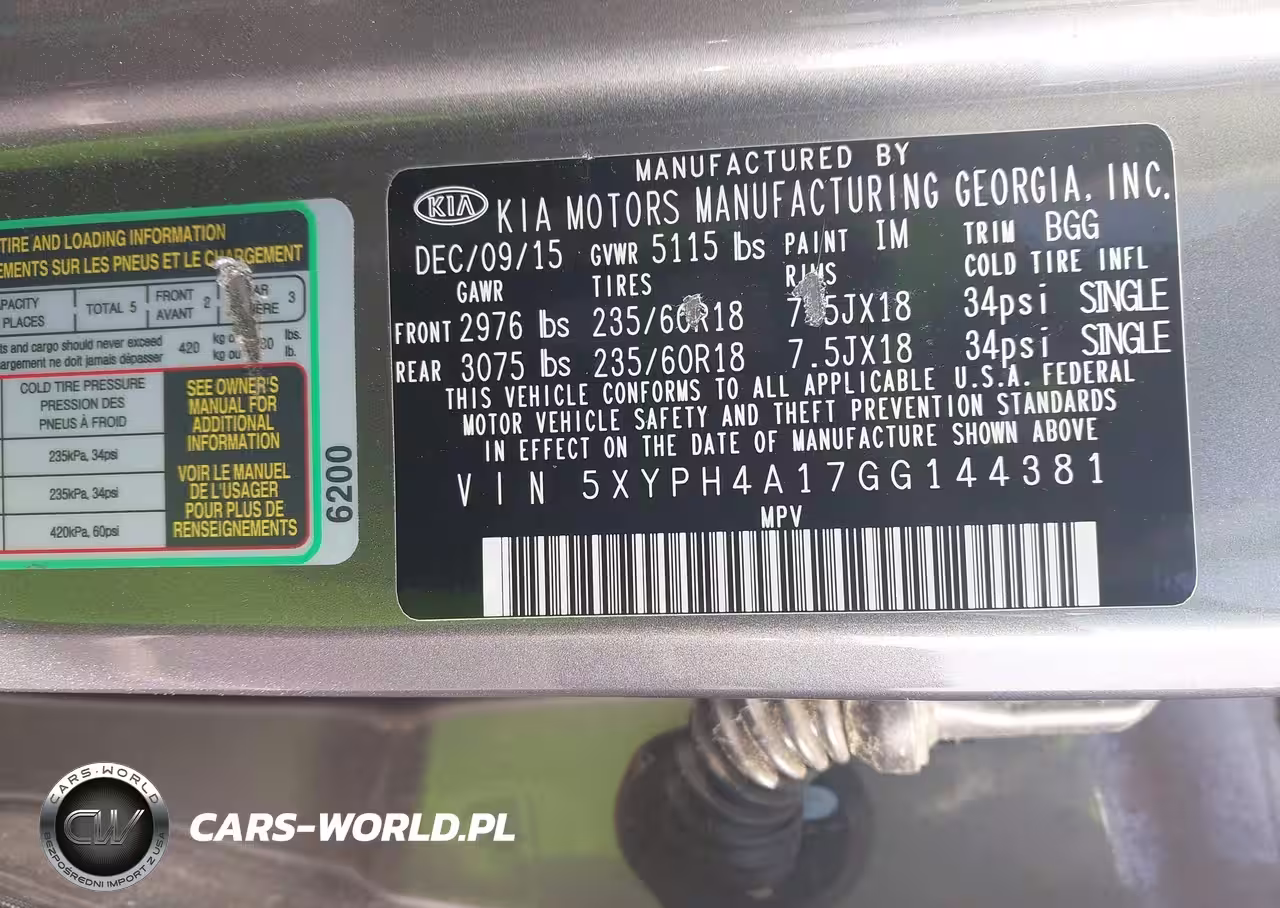 IAAI Nr: I-44788442 VIN: 5XYPH4A17GG144381 Port: Savannah, GA