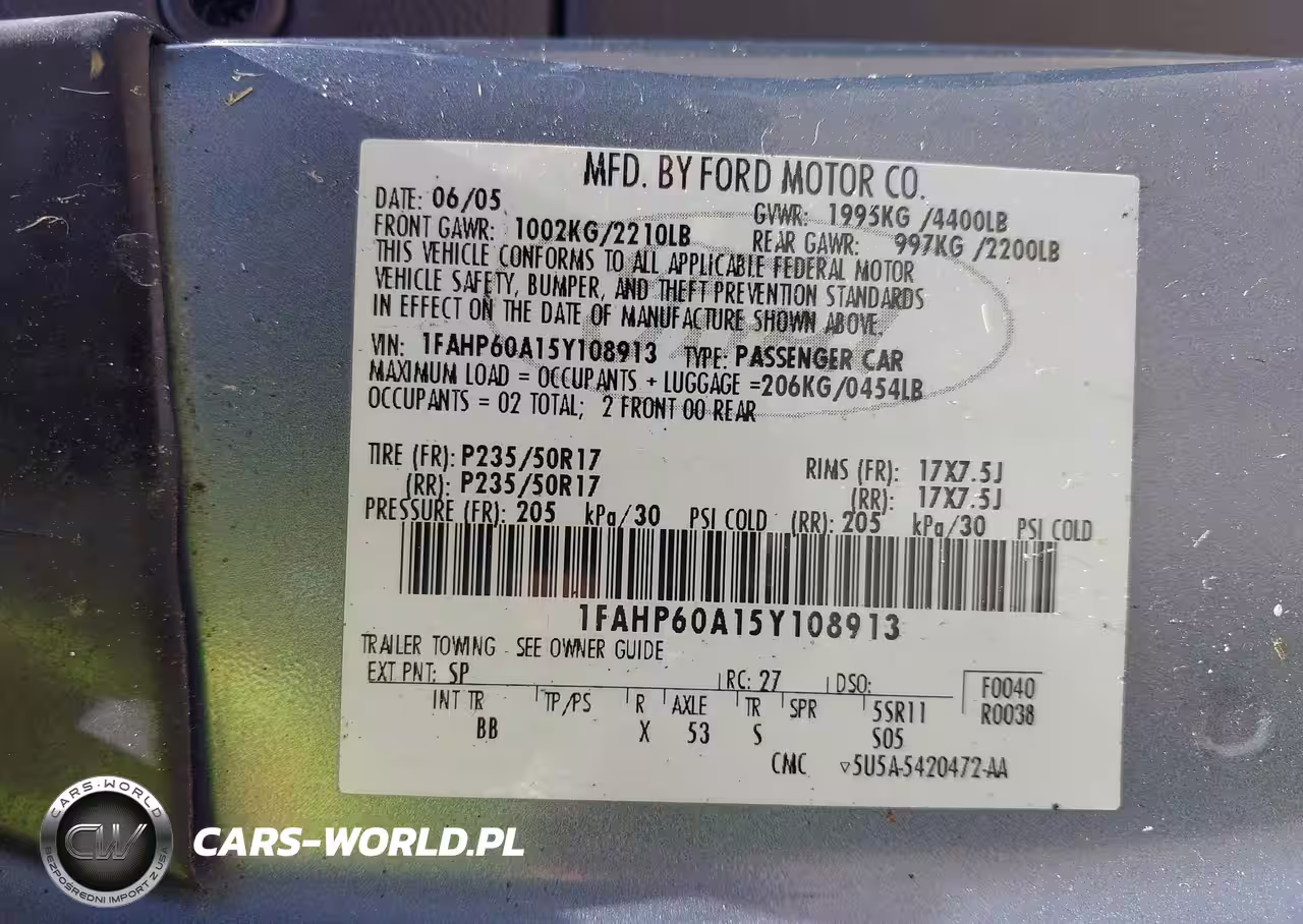 IAAI Nr: I-44788475 VIN: 1FAHP60A15Y108913 Port: Savannah, GA