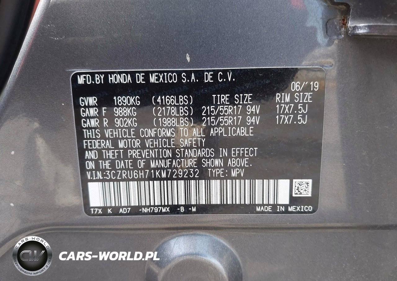 IAAI Nr: I-44788744 VIN: 3CZRU6H71KM729232 Port: Elizabeth, NJ
