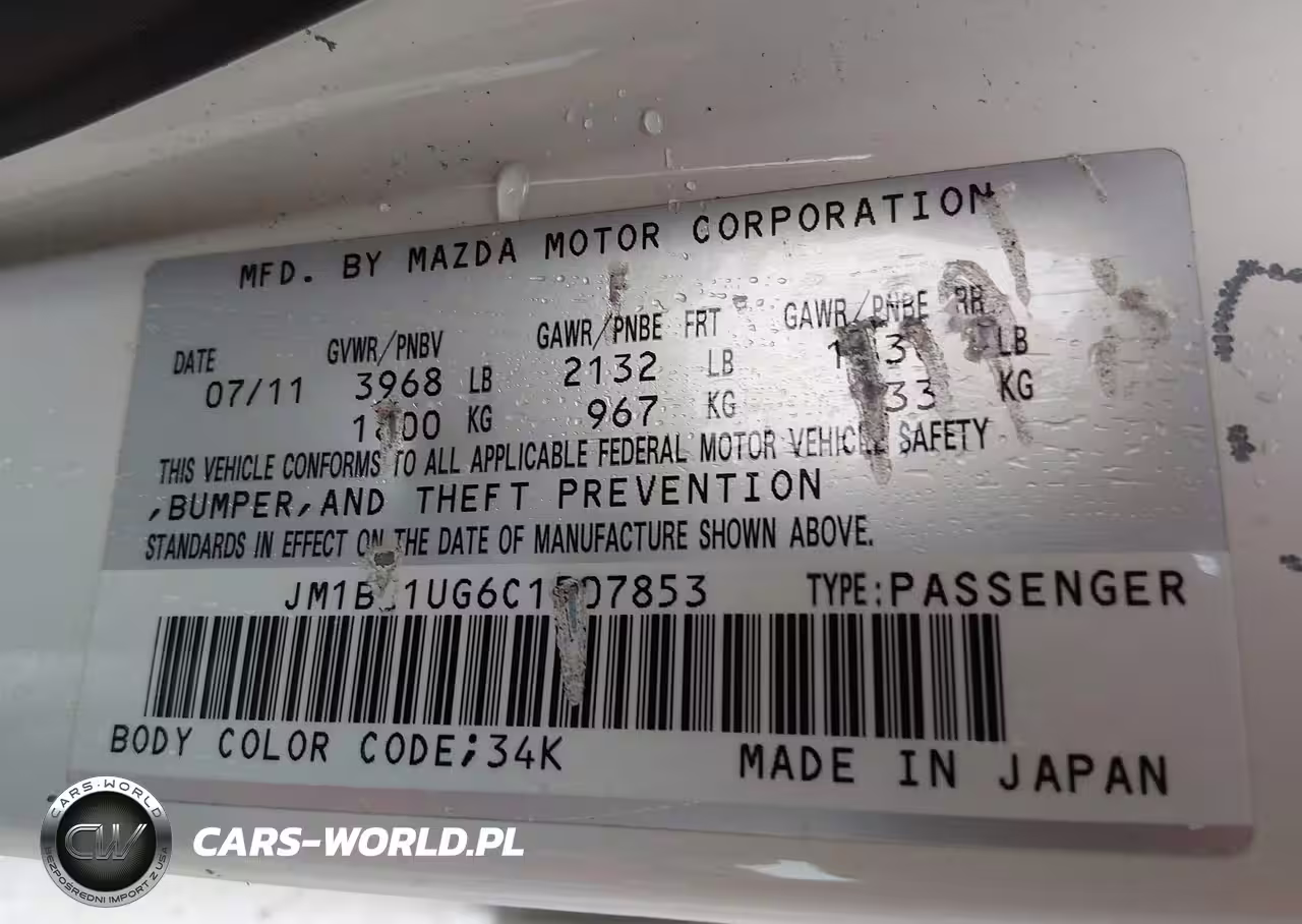 IAAI Nr: I-44789038 VIN: JM1BL1UG6C1507853 Port: Elizabeth, NJ