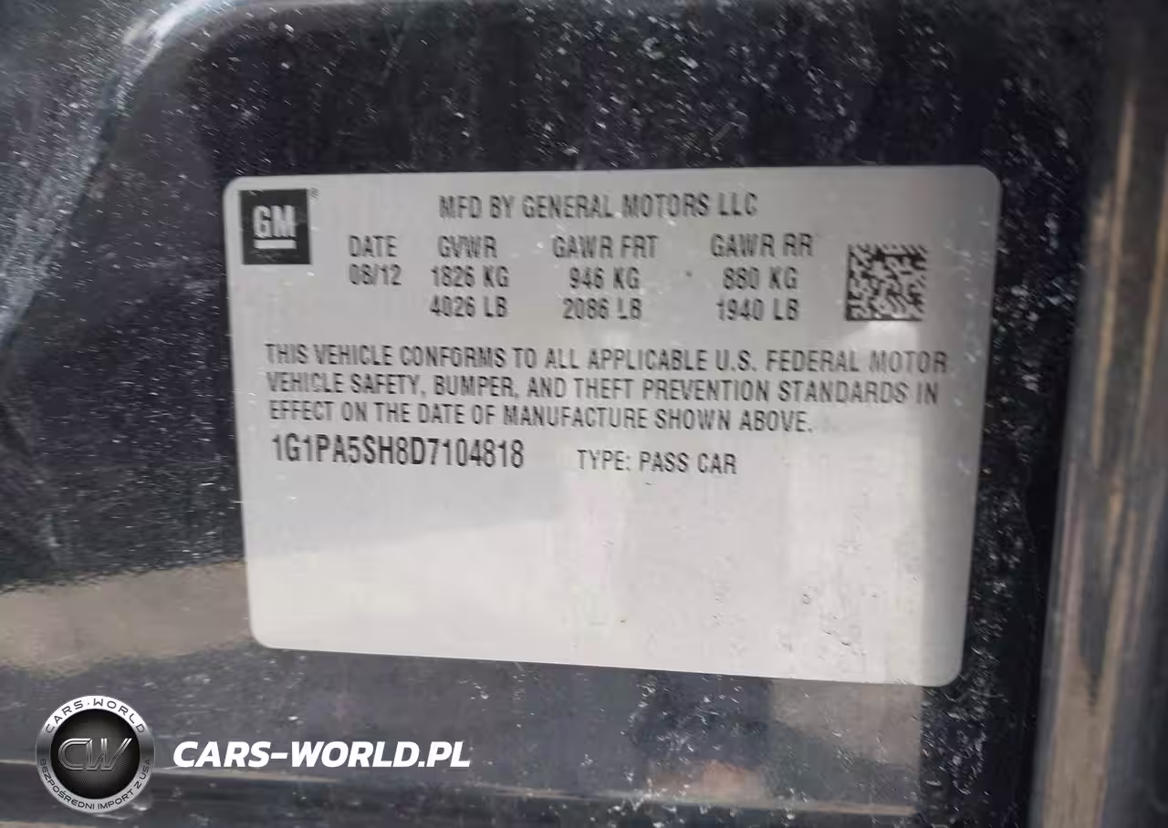 IAAI Nr: I-44789065 VIN: 1G1PA5SH8D7104818 Port: Elizabeth, NJ