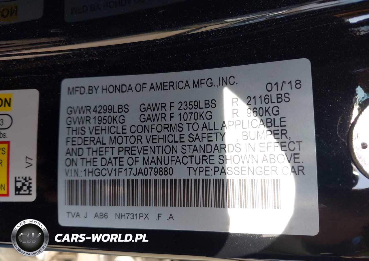 IAAI Nr: I-44790376 VIN: 1HGCV1F17JA079880 Port: Los Angeles, CA
