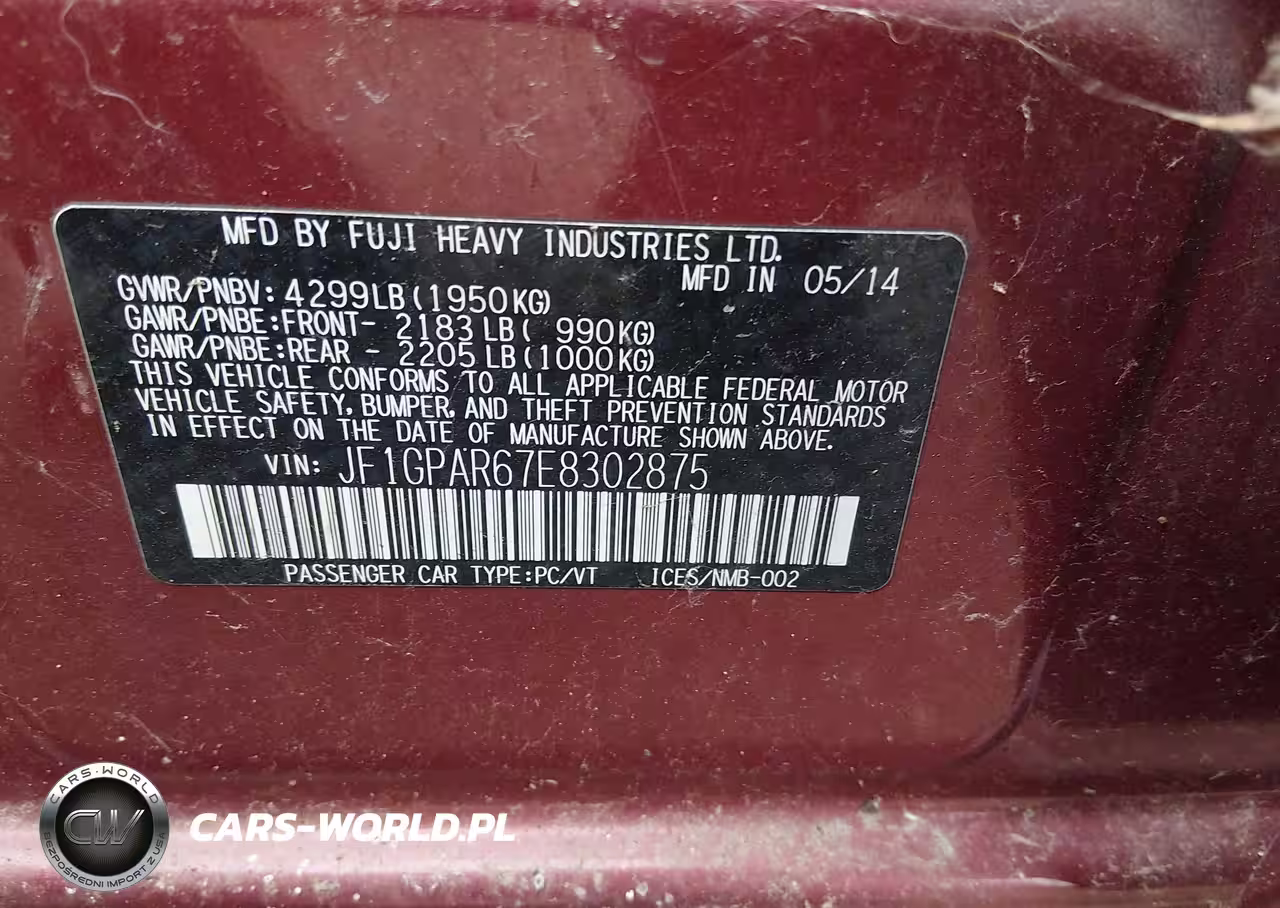 IAAI Nr: I-44790653 VIN: JF1GPAR67E8302875 Port: Indianapolis, IN