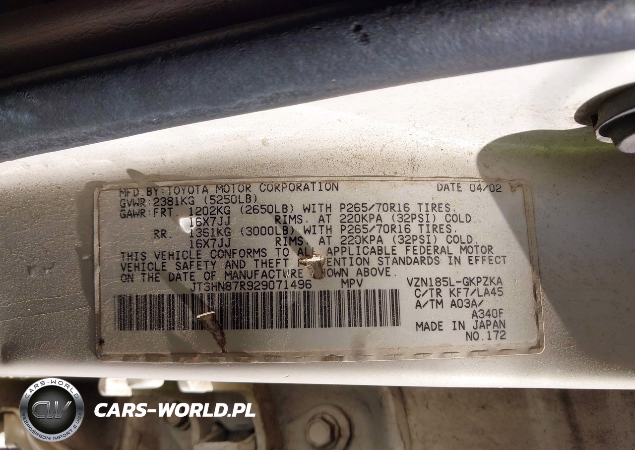 IAAI Nr: I-44790919 VIN: JT3HN87R929071496 Port: Savannah, GA