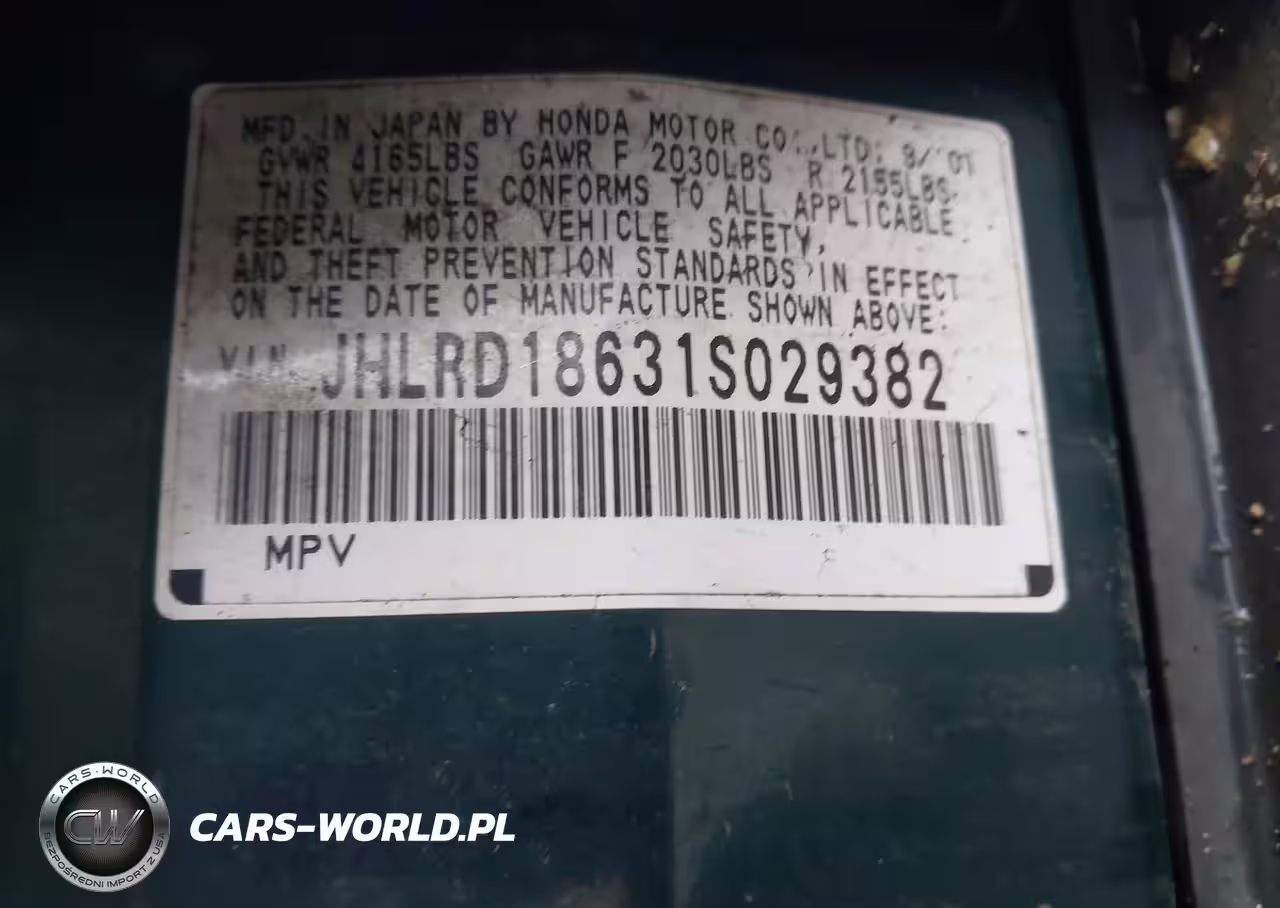 IAAI Nr: I-44791007 VIN: JHLRD18631S029382 Port: Elizabeth, NJ