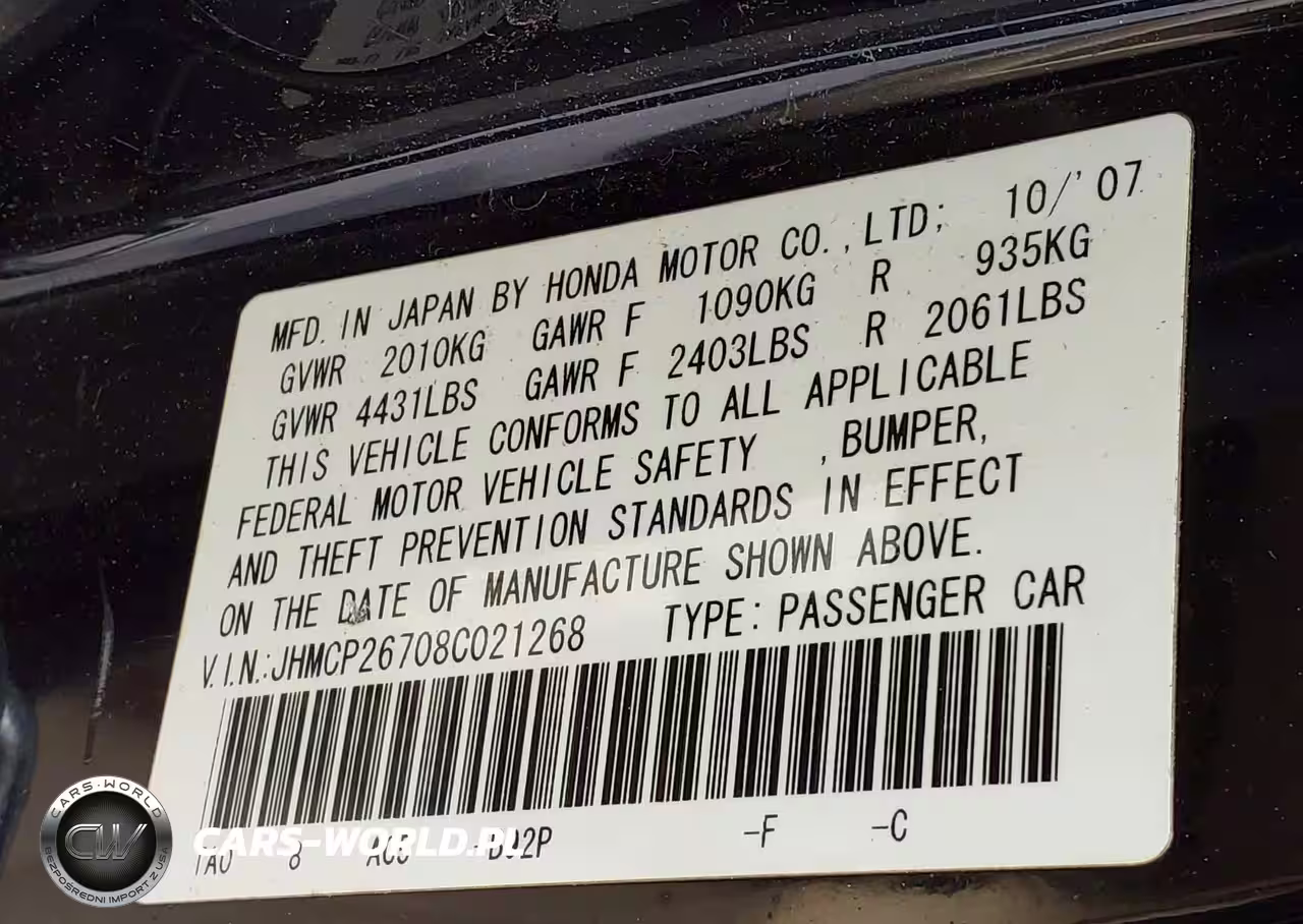 IAAI Nr: I-44791475 VIN: JHMCP26708C021268 Port: Savannah, GA