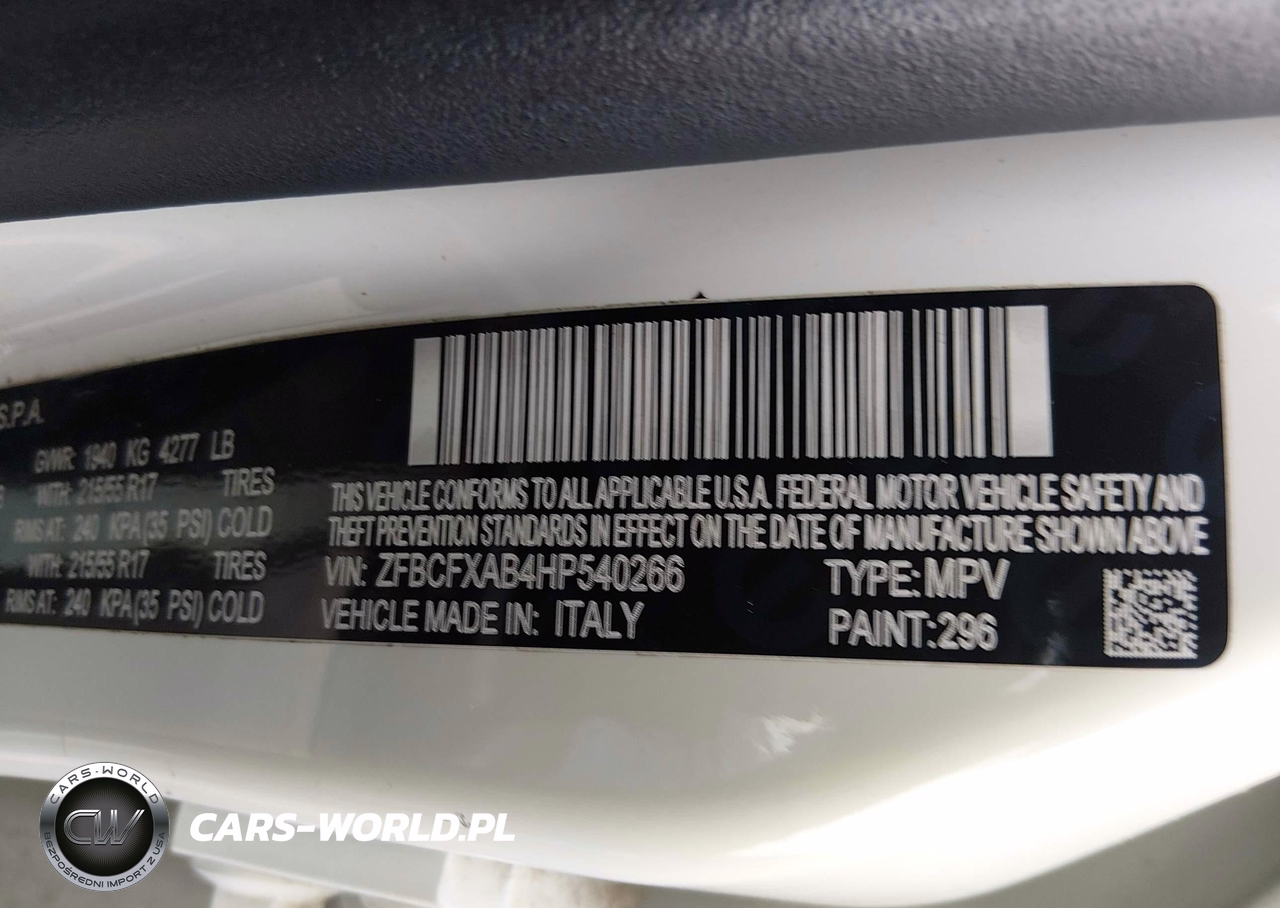 IAAI Nr: I-44791840 VIN: ZFBCFXAB4HP540266 Port: Houston, TX