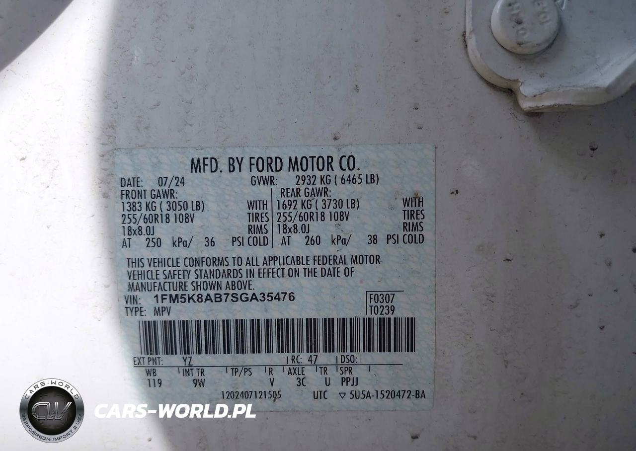 IAAI Nr: I-44792465 VIN: 1FM5K8AB7SGA35476 Port: Indianapolis, IN