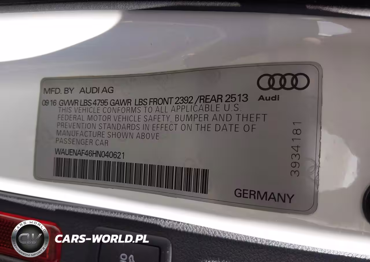 IAAI Nr: I-44792872 VIN: WAUENAF46HN040621 Port: Elizabeth, NJ