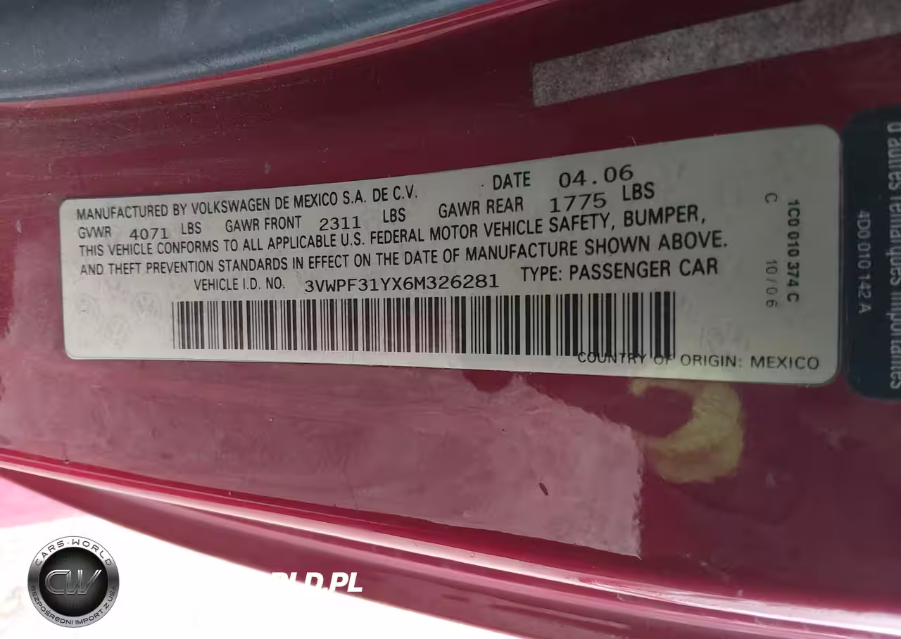IAAI Nr: I-44792926 VIN: 3VWPF31YX6M326281 Port: Indianapolis, IN
