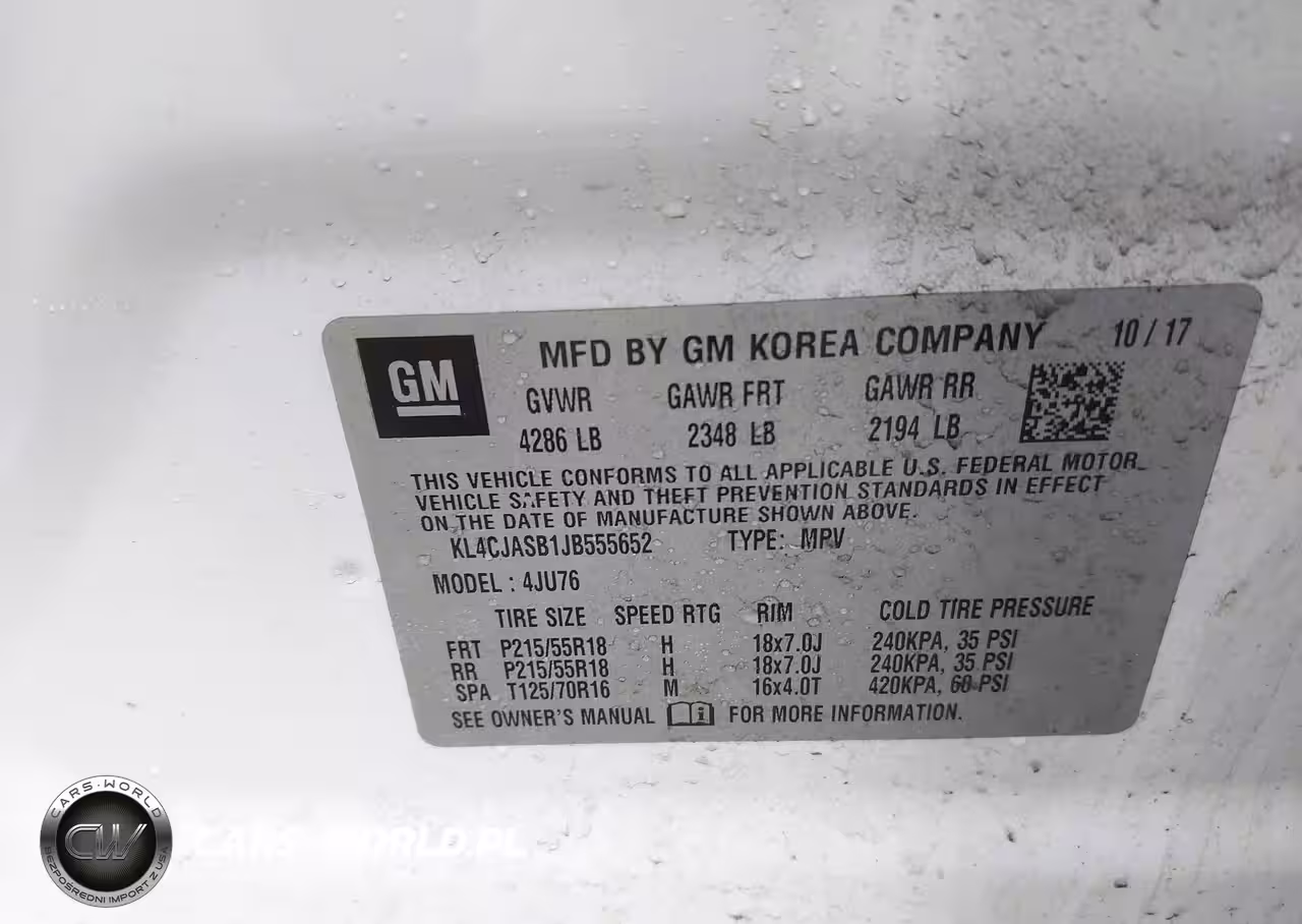 IAAI Nr: I-44792970 VIN: KL4CJASB1JB555652 Port: Elizabeth, NJ