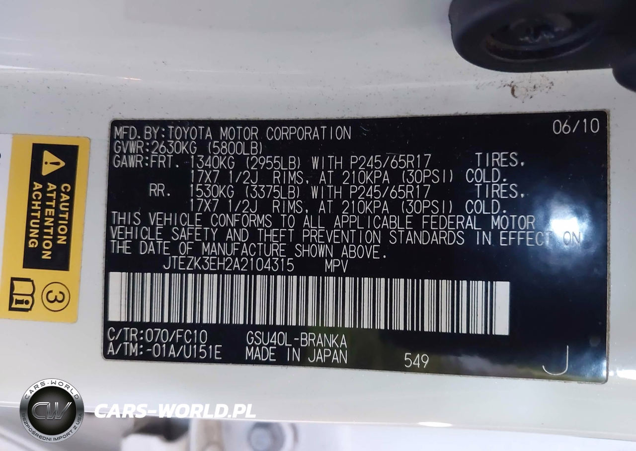 IAAI Nr: I-44794147 VIN: JTEZK3EH2A2104315 Port: Los Angeles, CA