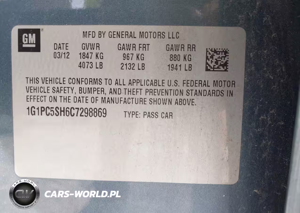 IAAI Nr: I-44794151 VIN: 1G1PC5SH6C7298869 Port: Savannah, GA