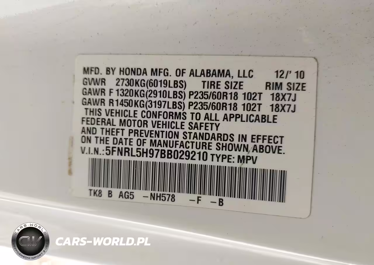 IAAI Nr: I-44794181 VIN: 5FNRL5H97BB029210 Port: Houston, TX