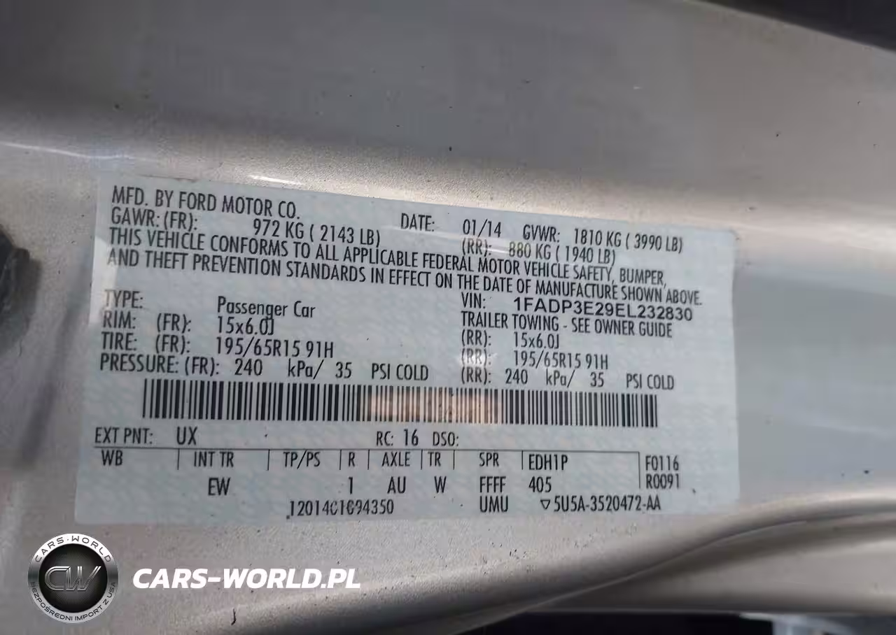 IAAI Nr: I-44794669 VIN: 1FADP3E29EL232830 Port: Indianapolis, IN