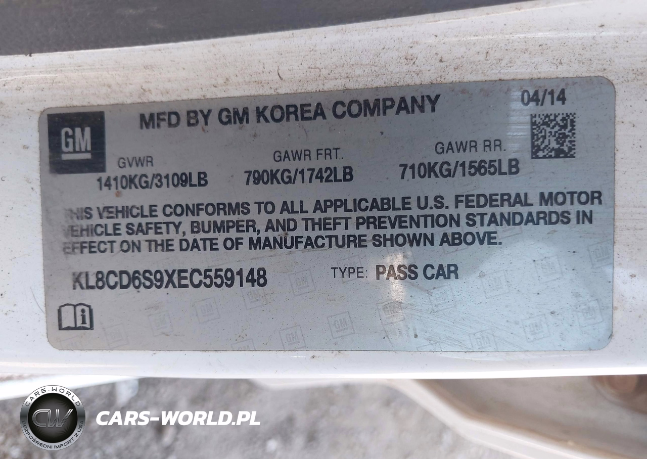 IAAI Nr: I-44794848 VIN: KL8CD6S9XEC559148 Port: Los Angeles, CA