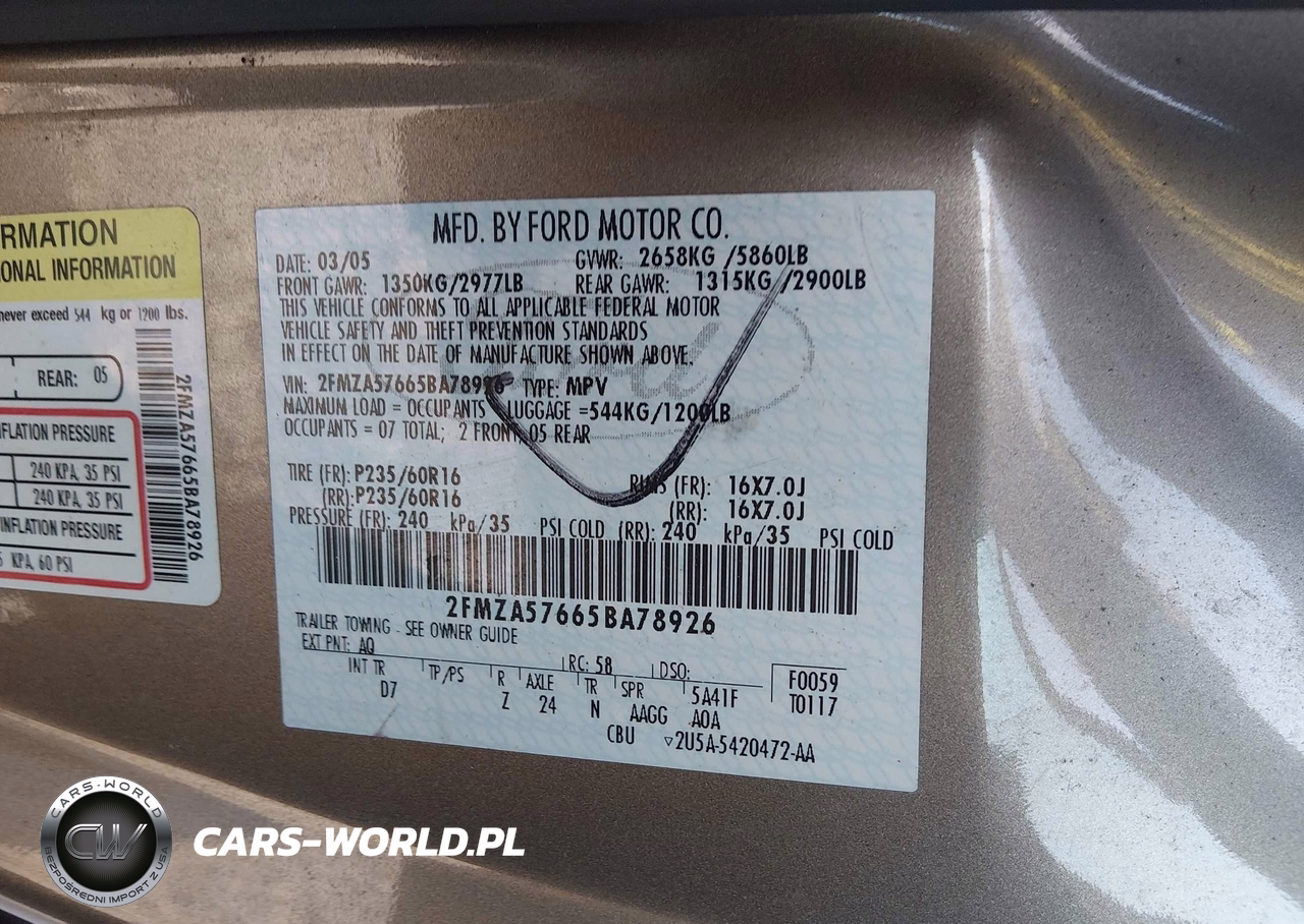 IAAI Nr: I-44795556 VIN: 2FMZA57665BA78926 Port: Indianapolis, IN