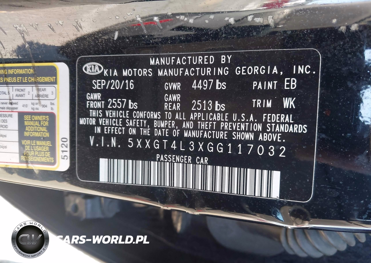 IAAI Nr: I-44796176 VIN: 5XXGT4L3XGG117032 Port: Los Angeles, CA