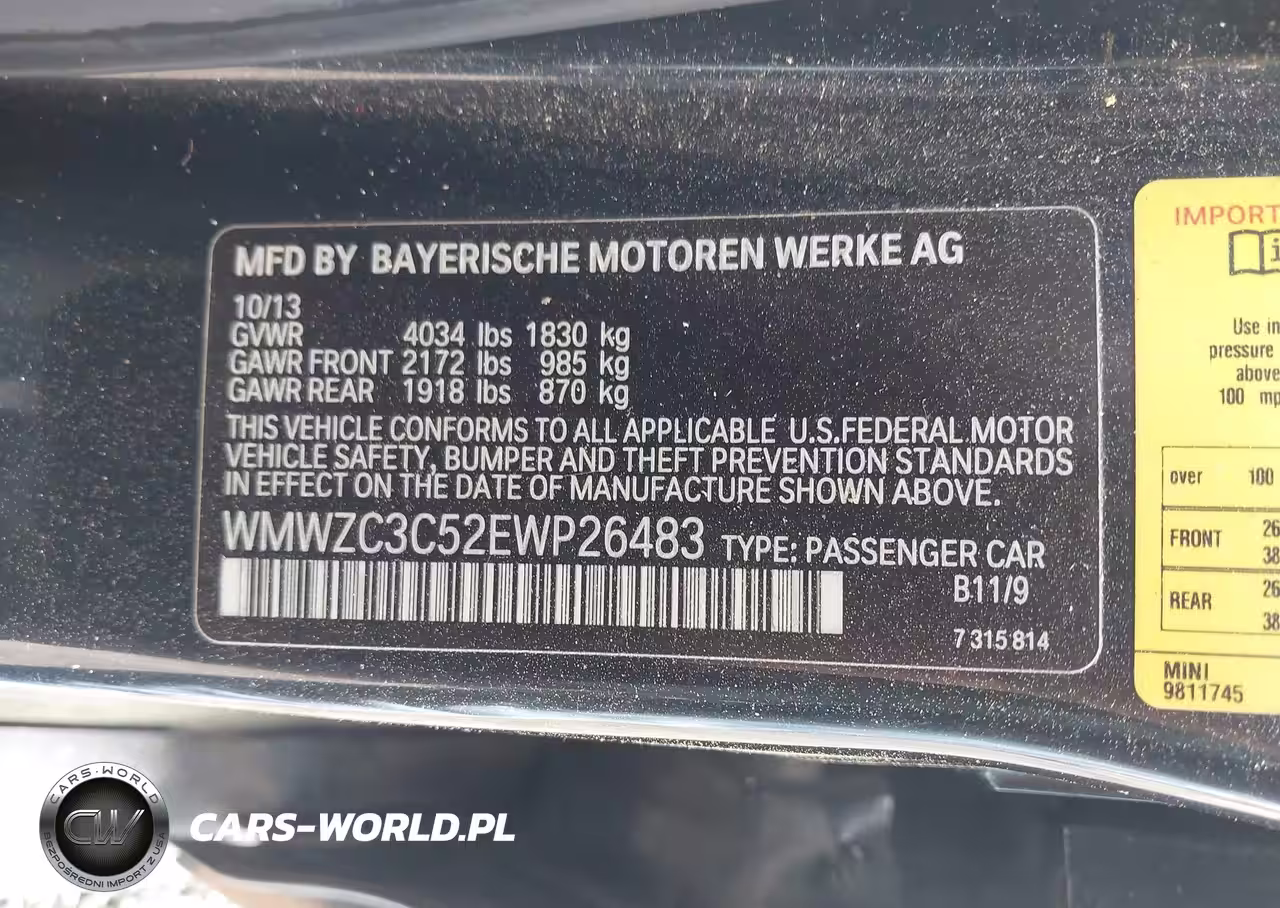 IAAI Nr: I-44796460 VIN: WMWZC3C52EWP26483 Port: Savannah, GA