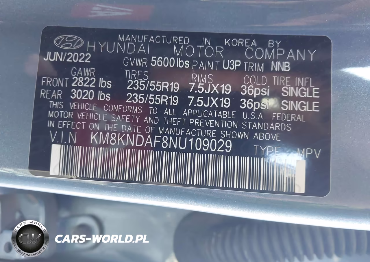 IAAI Nr: I-44797052 VIN: KM8KNDAF8NU109029 Port: Los Angeles, CA