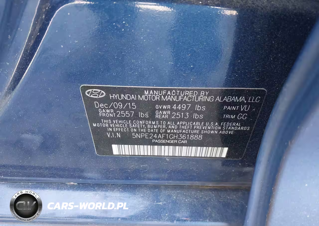 IAAI Nr: I-44797147 VIN: 5NPE24AF1GH361888 Port: Savannah, GA