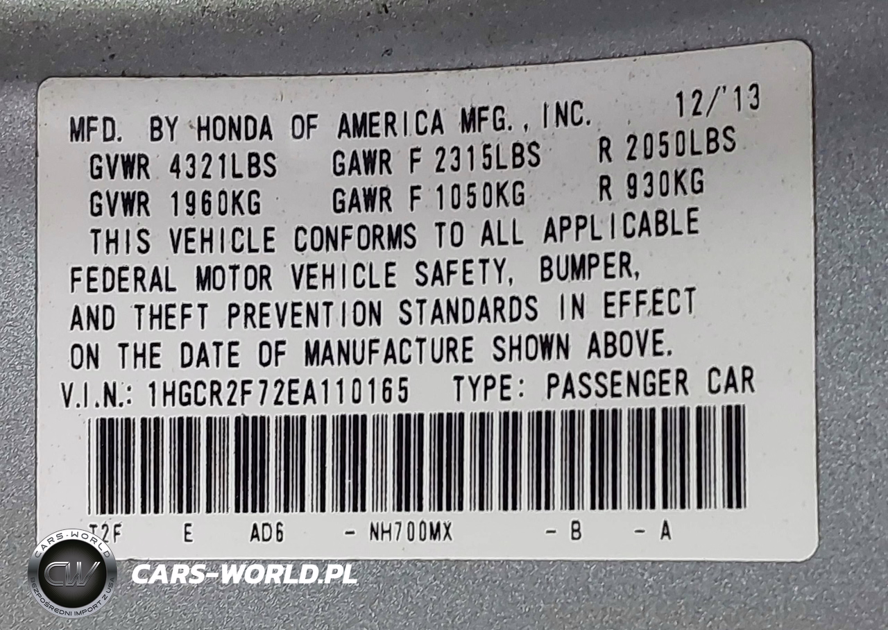 IAAI Nr: I-44797276 VIN: 1HGCR2F72EA110165 Port: Savannah, GA